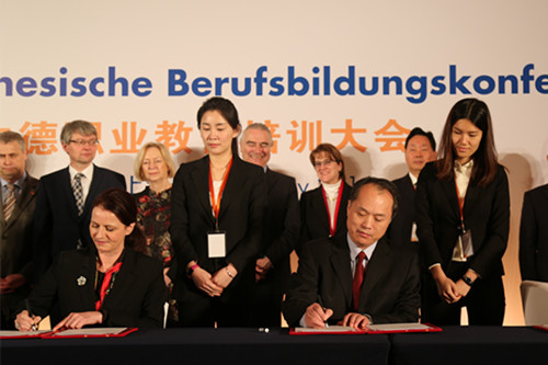 1月21日,在德国联邦教育与研究部部长Johanna Wanka女士的见证下,张金元副厅长代表湖北省教育厅,在2016中德职业教育大会上与德国工商大会上海代表处、德国驻华大使馆签署了湖北与德国职业教育战略合作备忘录。